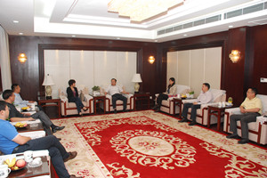 圖為朱北娜會(huì)長(zhǎng)(左四)與吳錦市長(zhǎng)(右五)等有關(guān)領(lǐng)導(dǎo)親切交談的場(chǎng)景。