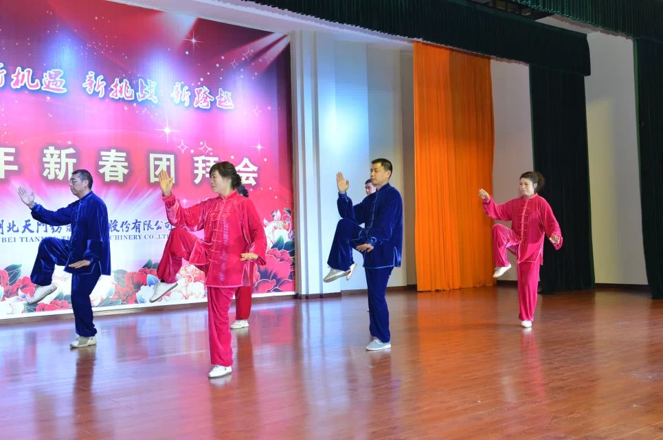 時而白鶴亮翅,時而手揮琵琶,時而如封如閉。在舒緩、輕柔的音樂聲中,由汪枝秀、沈彩虹、楊金仙、于少波、龔振軍、劉學(xué)斌表演的太極徐徐展開。他們都是太極愛好者,因?yàn)樘珮O走到了一起,既強(qiáng)健了身體,也愉悅了身心,更增進(jìn)了彼此的了解。員工們欣賞著他們靈動的身姿,沉浸在美妙的音樂中,享受著難得的一刻輕松愜意。