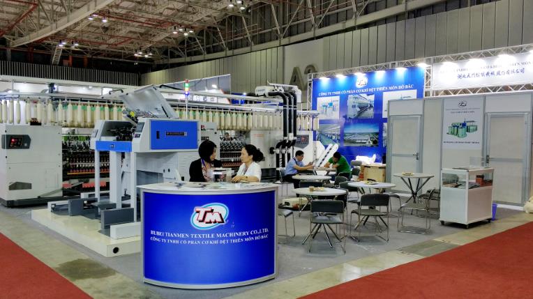 在展會(huì)上,位于A2-2D-1湖北天門紡織機(jī)械股份有限公司展位人頭攢動(dòng)、客戶云集,成為整個(gè)展會(huì)的一大亮點(diǎn),VINATEX NAM DINH、VICOTEX、 成功紡織、臺(tái)灣興業(yè)、臺(tái)南紡織、東光公司等當(dāng)?shù)仄髽I(yè)負(fù)責(zé)人親赴現(xiàn)場(chǎng)參觀,華孚時(shí)尚董事長孫偉挺等嘉賓在天門紡機(jī)展位認(rèn)真觀看設(shè)備演示,詳細(xì)了解了產(chǎn)品的新性能和新工藝,對(duì)天門紡機(jī)并條機(jī)與細(xì)紗機(jī)兩款展機(jī)給與高度評(píng)價(jià)。