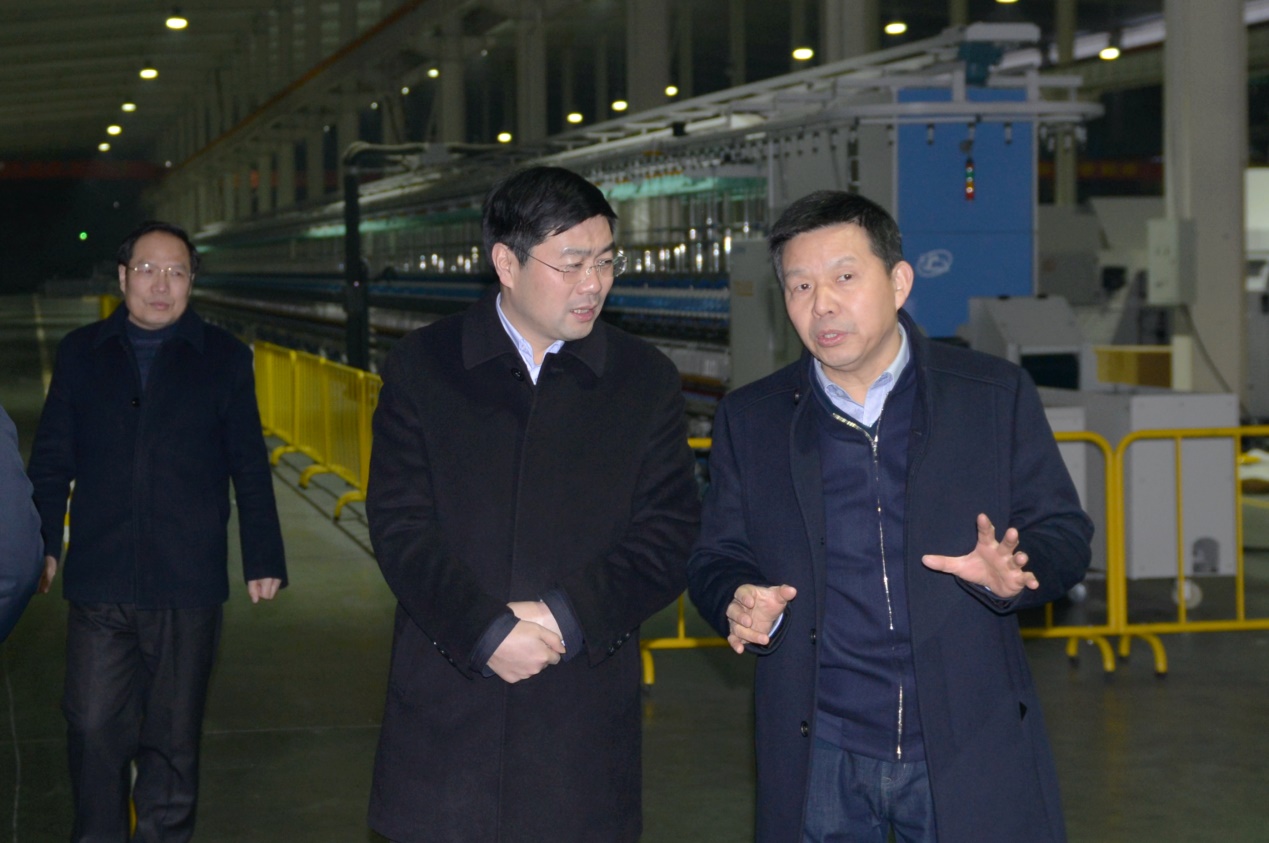2019年1月2日下午,市委副書記、代理市長楊興銘調(diào)任天門后第一次調(diào)研就來到天門紡機,公司董事長沈方勇、總經(jīng)理焦倫進、黨委書記魯?shù)挛呐阃瑮钍虚L參觀了生產(chǎn)現(xiàn)場。