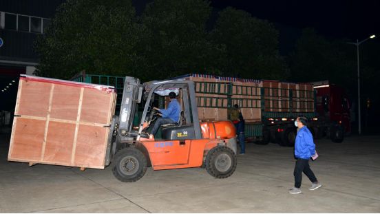 將包裝好的產(chǎn)品進(jìn)行裝車作業(yè),連夜發(fā)貨