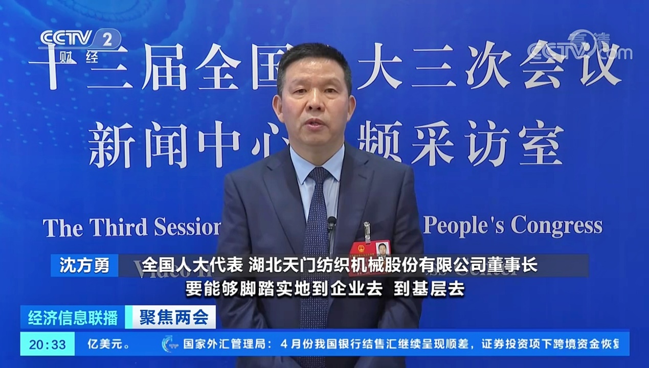 全國人大代表、湖北中小企業(yè)協(xié)會會長、湖北天門紡織機(jī)械股份有限公司董事長沈方勇在參加第十三屆全國人大三次會議期間,分別就“關(guān)于促進(jìn)棉花及紡織產(chǎn)業(yè)健康發(fā)展的再次建議”、“ 關(guān)于出臺強(qiáng)有力措施對沖疫情影響支持湖北中小企業(yè)發(fā)展的建議”、“ 關(guān)于珍惜寶貴財政金融資源在紓困惠企工作中精準(zhǔn)施策有的放矢的建議”做專題諫言。