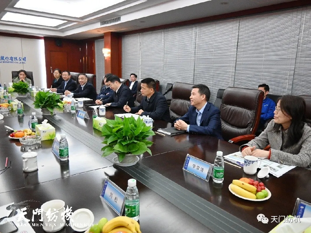 4月14日,中國紡織工業(yè)聯(lián)合會黨委書記兼秘書長高勇,在中國紡織機械協(xié)會會長顧平的陪同下,帶領(lǐng)紡機協(xié)會相關(guān)部門負責(zé)人到天門紡機調(diào)研。天門市委副書記、市長楊興銘,副市長高文博以及市經(jīng)信局局長張文輝陪同參與調(diào)研活動。