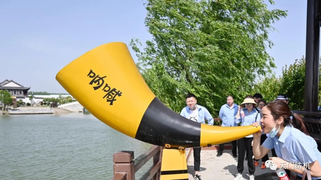 接著,青年團(tuán)員乘車來到天門市海龍島游園。這是一座位于江漢平原的田園鄉(xiāng)村游園,映入眼簾的是別具一格的蘇州古典園林,水亭樓閣鱗次櫛比,湖光山色相互襯托,好一幅迷人的畫卷。在這里,青年團(tuán)員舉行了詩歌朗誦比賽,借此抒發(fā)愛國情懷。參賽者一個個精神抖擻、慷慨激昂,臺下的觀眾聽得熱血沸騰、群情激昂。