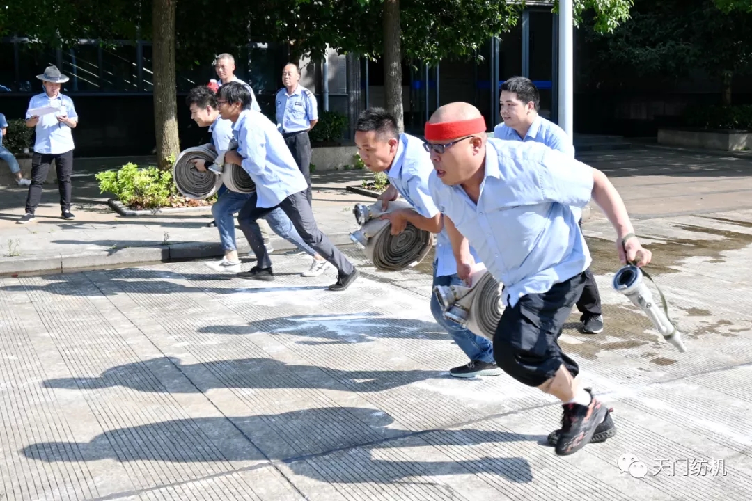 為鞏固“安全生產(chǎn)月”活動效果,檢驗消防應(yīng)急處置能力,7月24日,天門紡機經(jīng)過認真籌備,舉辦了年度消防技能競賽活動,活動分為滅火器接力撲救火災和消防水帶協(xié)作兩個項目,來自公司各部室、車間的8支隊伍參加了競賽。