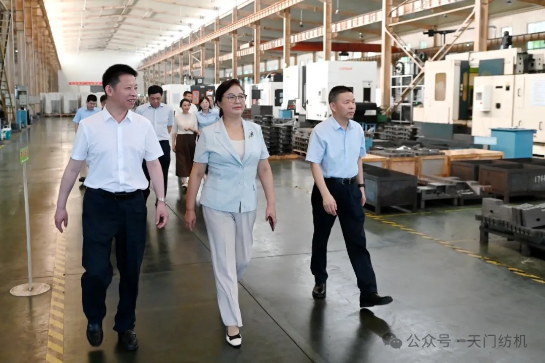王玲主任一行深入天門紡機生產(chǎn)車間,考察企業(yè)運行情況。沈方勇董事長向王玲主任重點介紹了近幾年開展“智慧工廠”建設(shè)、推進數(shù)字化轉(zhuǎn)型和智能化改造的總體思路及工作進度。
