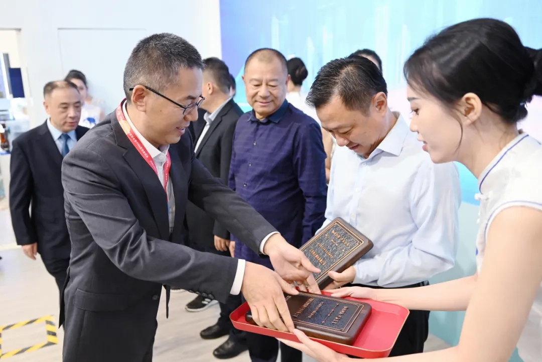 天門(mén)紡機(jī)副總經(jīng)理肖少華宣布為在并條新技術(shù)、新產(chǎn)品示范應(yīng)用上作出突出貢獻(xiàn)的華茂集團(tuán)、魏橋紡織、魯泰紡織等45家企業(yè)名單,中國(guó)棉紡織行業(yè)協(xié)會(huì)董奎勇會(huì)長(zhǎng)為這些企業(yè)代表頒發(fā)紀(jì)念牌。