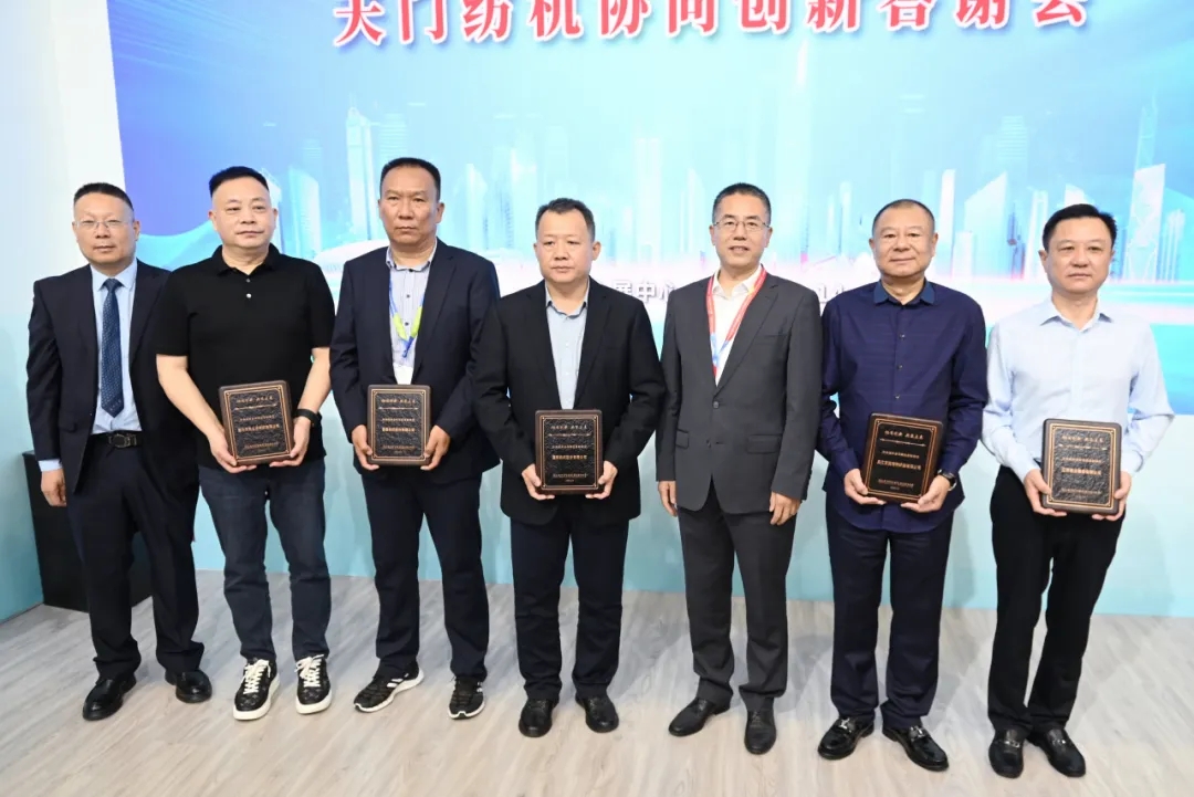 天門(mén)紡機(jī)總經(jīng)理焦倫進(jìn)宣布在協(xié)同創(chuàng)新中作出突出貢獻(xiàn)的單位和個(gè)人名單,中國(guó)紡織工業(yè)聯(lián)合會(huì)徐迎新副會(huì)長(zhǎng)為倪俊龍董事長(zhǎng)、陳冰教授、曹中華博士、陸惠文先生頒發(fā)紀(jì)念章,為臺(tái)達(dá)、匯川、南通五洲等3家企業(yè)代表頒發(fā)紀(jì)念牌。