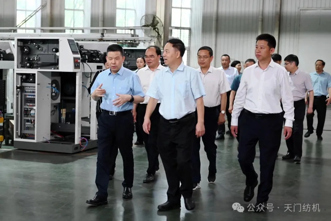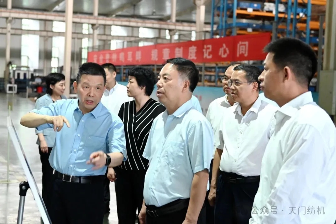2025年5月22日下午,湖北省人大常委會(huì)副主任楊云彥,省人大常委會(huì)委員、民宗僑外委主任委員陳亮,省人大常委會(huì)副秘書(shū)長(zhǎng)陳少敏,省人大民宗僑外委專(zhuān)職副主任委員劉玉坤,省人大民宗僑外委辦公室主任彭細(xì)元,省人大民宗僑外委辦公室副主任馮吉等一行,深入天門(mén)紡機(jī)開(kāi)展專(zhuān)題調(diào)研。天門(mén)市委書(shū)記、市人大常委會(huì)主任紀(jì)道清,市人大常委會(huì)黨組副書(shū)記、副主任蔣勝雄,市人大常委會(huì)黨組成員、副主任張文輝,市人大常委會(huì)黨組成員、秘書(shū)長(zhǎng)龔賢俊,市人大常委會(huì)教僑工委主任陳新華、侯口街道辦事處黨工委書(shū)記劉娟等領(lǐng)導(dǎo)陪同調(diào)研。天門(mén)紡機(jī)董事長(zhǎng)沈方勇全程接待,匯報(bào)工作。