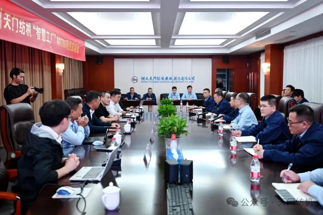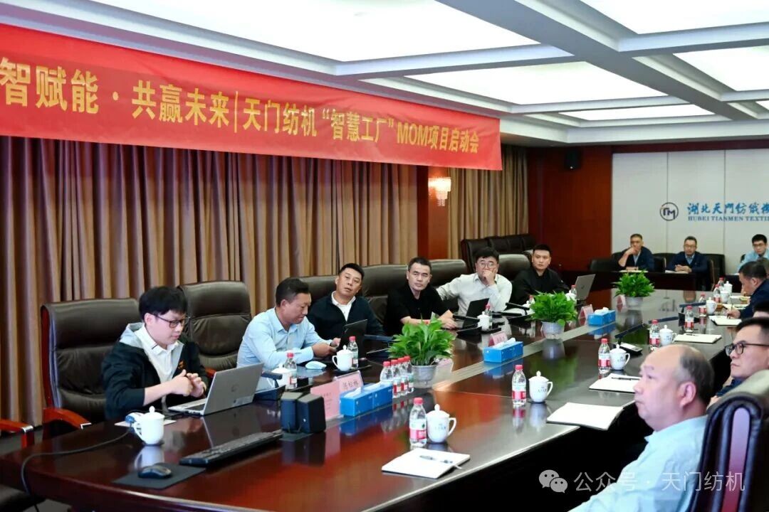 2025年10月15日下午,天門紡機(jī)在科技樓五樓會議室召開MOM系統(tǒng)項(xiàng)目啟動會。公司董事長沈方勇、項(xiàng)目合作方廣東盤古信息科技股份有限公司CTO劉鵬、副總經(jīng)理游畢濤及項(xiàng)目相關(guān)負(fù)責(zé)人出席會議,公司副總經(jīng)理胡進(jìn)紅、鄧俊杰,有關(guān)部門、車間負(fù)責(zé)人和工作人員參加了會議。